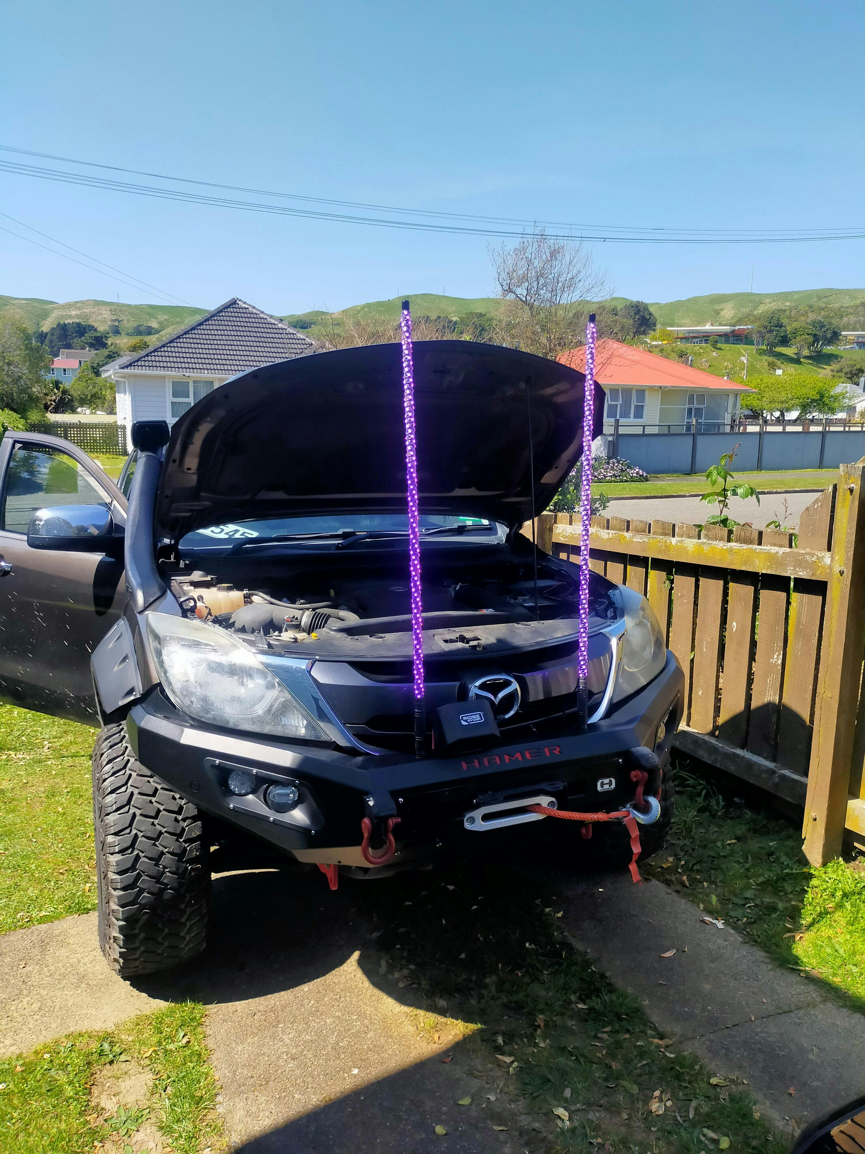 Whiplights can be mounted in several ways eg on an existing bull or nudge bar or onto existing holes (12mm min) where light bars or other accessories can also go or on your bonnet with a mounting plate (not included) but also available from NZ Whiplights should you need it.